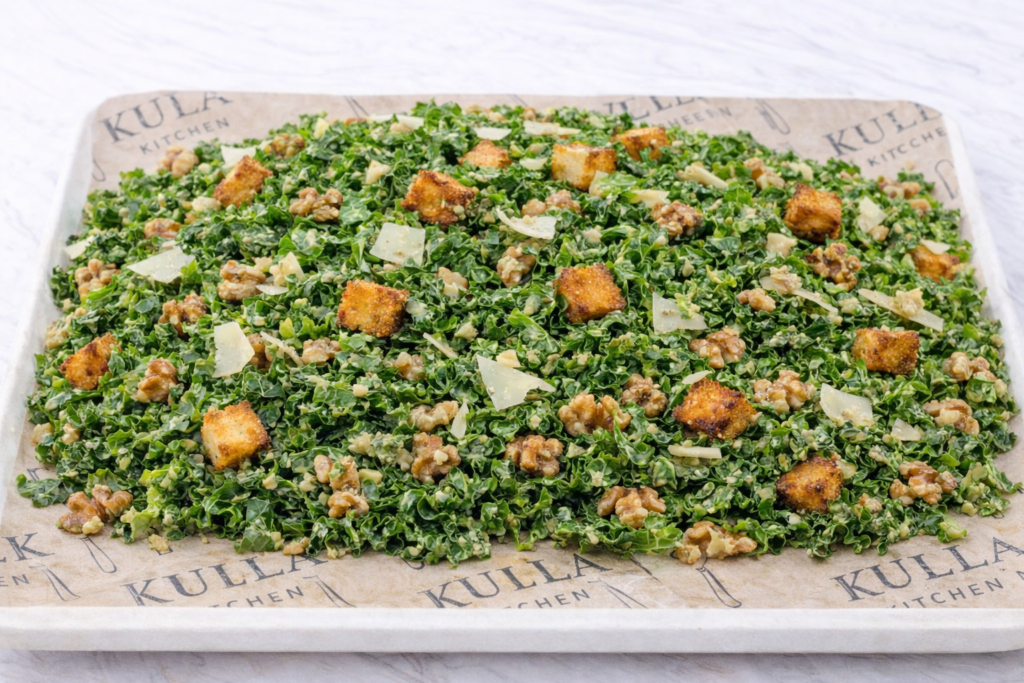 Crisp kale and baby gem with toasted walnuts, sourdough croutons & a silky tahini-walnut Caesar dressing.