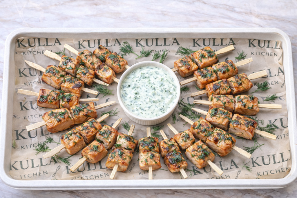 Scandi-Style Salmon Skewers with Dill & Mustard Glaze